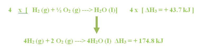 Since there is ½ coefficient in front of O2 and 2 whole moles are needed, the entire equation including the ΔH should be multiplied by a factor of 4.