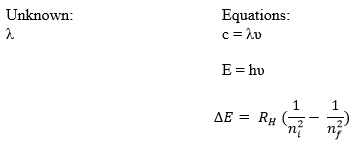 Example: What is the wavelength of a electron transitioning from n= 3 to n= 1? Is this electron emitting or absorbing energy? Explain.