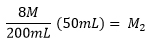 Example: What is the molarity of a 200 mL solution made from 50 mL of 8M stock solution of HCl?