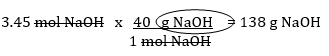 2. How many grams of NaOH are present in 3.45 moles of NaOH? [Ans: 138]
