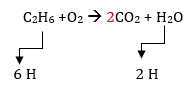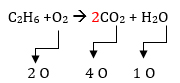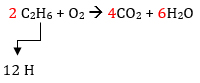 Notice that the # of carbon atoms in the reactants is 2 but there is only 1 C in the products. The # of atoms of oxygen and hydrogen are also uneven; so we have to balance the #s by adding coefficients.