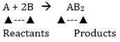The left half of the equation is called the “reactants” and the right side are the “products.” So we have 1 A on each side of equation and 2 B atoms on each side.